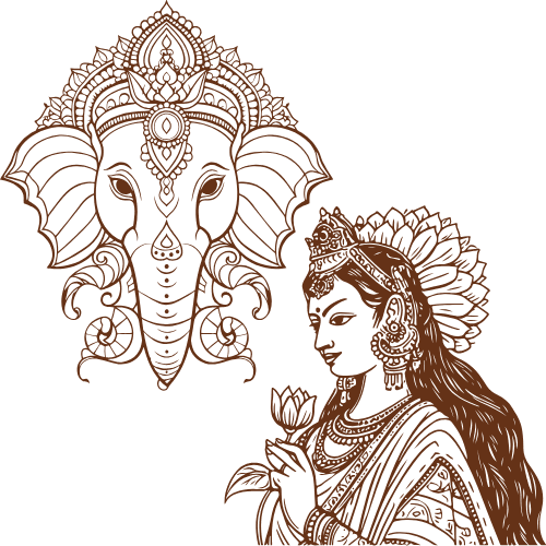 Spesso la dea è accompagnata da Gaṇeśa, colui che rimuove gli ostacoli e assicura il successo di ogni nuovo inizio. Di fatto Divālī sancisce l'inizio del nuovo anno.
